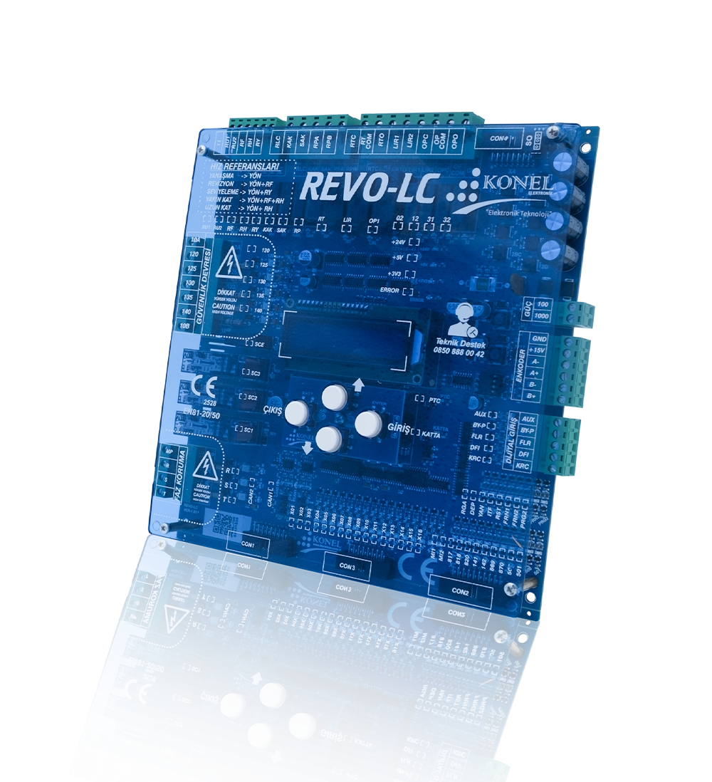 Genel Özellikler * EN81-20 Standardına uygun * Paralel 16, Seri 24 durak çalışabilme * Kuyu Kopyalama özelliği * Dahili Çift Kapı desteği ile her kat için bağımsız kapı ayarı * Dahili kapı köprüleme sistemi * Programlabilir giriş ve çıkışlar * Dahili anons ve müzik sistem 2 asansöre kadar grup çalışma